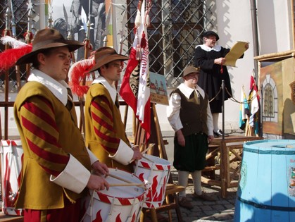 | Mit Beginn des ersten Stadtmauerfestes 1987 in Nördlingen , wurde eine historische Gruppe mit Stadtsoldaten und deren Gefolge gebildet. Seit dieser Zeit, bis zuletzt 2022, präsentierte sich der Verein bei historischen Festen, mit einem immer wieder neu gestalteten Lager. Dabei war die Darbietung einer Verurteilungsszene, mit Schand- und Ehrstrafen nach alt-überlieferten Urteilen, ein ebenfalls langjähriger Programmpunkt. Bei Festumzügen kündigten uns